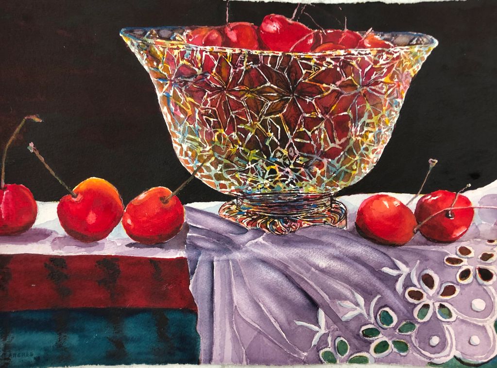 When using watercolors, every painting begins with a thumbnail sketch and value and color decisions. After the drawing is lightly sketched, either masking fluid or the first wash layer is laid down, preserving some of the whites of the paper. As each layer must be completely dry before the next, and many of her pieces have between 50 and 80 layers, it is not unusual for Sue to be working on 3-4 pieces at different stages at the same time. Watercolor can't be rushed, and neither should you! So, take your time, look around, and take a moment to drop me a line!